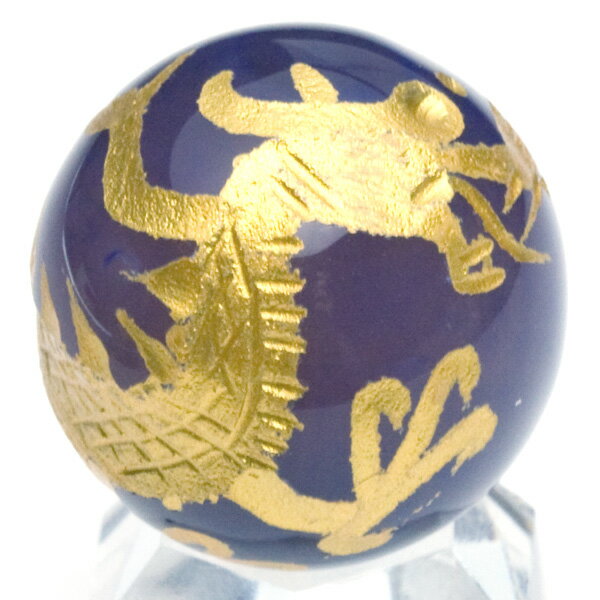 【彫刻置物】丸玉 ブルーメノウ20mm (金彫り) 青龍 ※DM便・ネコポス不可※ 【パワーストーン 天然石 アクセサリー】