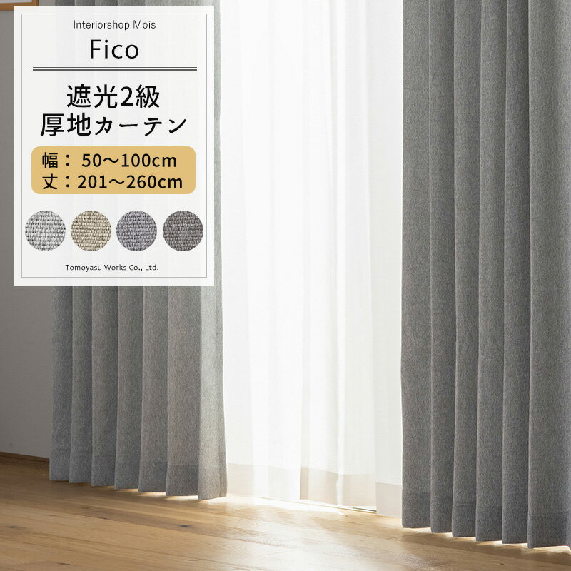 カーテン グレー サイズオーダー 幅50〜100cm 丈201〜260cm 【AH584】 フィコ [1枚] 遮光2級 無地 ナチュラル モダン 和室 リビング 寝室 グレイッシュ グレー ベージュ ブルーグレー OKC5