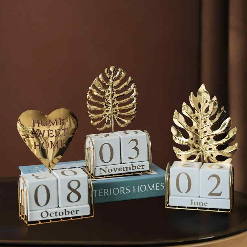 卓上カレンダー 万年カレンダー 日付表示 金属製 アイアン 木製 ハート型 シンプル モダン スタイリッシュ インテリア 置物 デスク リビング 書斎 オフィス 玄関 黒 白 ピンク ナチュラルカラー 組み立て式