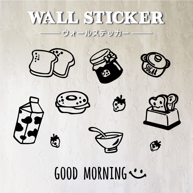 ウォールステッカー モーニング はがせる インテリアステッカー 壁紙シール お部屋シール 壁紙OK キッチン 台所 かわいい 子供部屋 キッズルーム 室内用 転写 簡単 ふちなし
