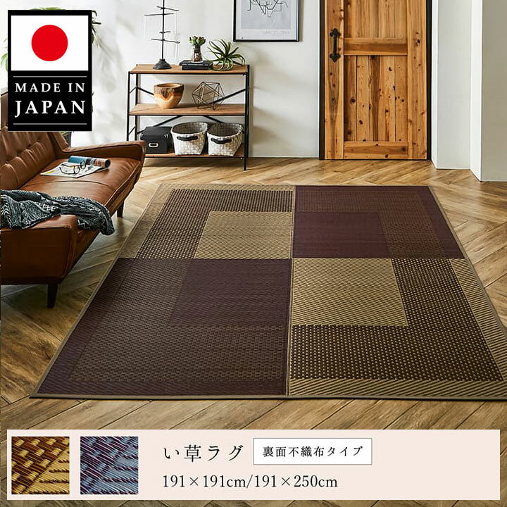 【SS限定!確率1/2で最大100%ポイントバック】 い草ラグ 正方形【モーニング2】日本製 191×191cm 夏用 シンプル