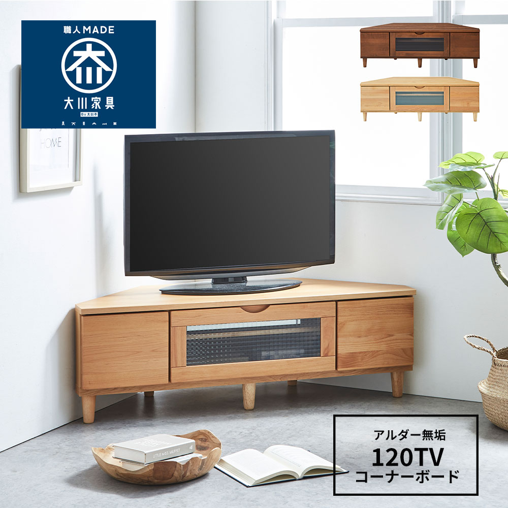120コーナーTVボード 120 大川家具 アルダーシリーズ ナチュラル ブラウン 北欧 ノルディックスタイル 国産 シンプル モダン 送料無料 天然木 大川家具 隙間家具 シンデレラフィット