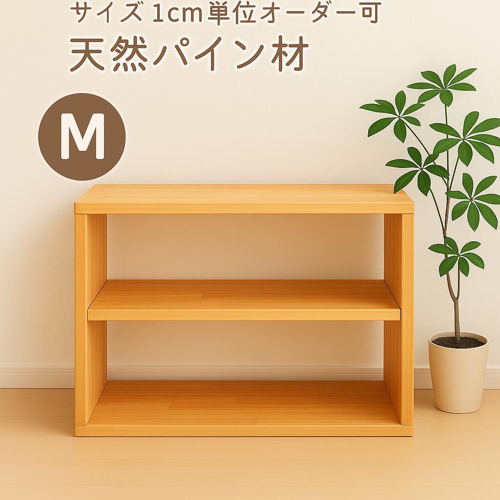 奥行・高さ・横幅すべて指定可能! オーダーメイドMサイズは最大、高さ40cm、横幅60cm、奥行き30cmまでのサイズを指定できます。 天然パイン材で作る2段オープンラックです。 1cm単位でのオーダー製作が可能なので、空間にぴったり収まる「シンデレラフィット」を実現できます。 無塗装仕上げのため、木の温もりや質感をそのまま楽しめます。 本棚・収納棚・ディスプレイ棚など幅広く活用できます。 特徴 素材:天然パイン集成材(無塗装) サイズ:奥行・高さ・横幅を1cm単位でオーダー可能 組立不要の完成品でお届け 耐荷重:約15〜20kg(棚板1枚あたり) おすすめの使い方 リビングの本棚や雑貨ディスプレイに キッチンでの調味料や家電収納に デスク下や収納棚の追加段として 店舗什器やイベント展示用にも ※天然木を使用しているため、木目や色合いには個体差があります。 ※オーダー製作のため、発送までにお時間をいただく場合があります。奥行・高さ・横幅を自由にオーダーできる、天然パイン材の2段オープンラック 「この隙間にちょうど入る棚がほしい」「既製品ではサイズが合わない」 そんなお悩みを解決する、1cm単位でサイズ指定可能なオーダーメイドラックです。 天然パイン材のやさしい木目と温もりが、暮らしの空間に自然に溶け込みます。 シンデレラフィットの心地よさ 奥行・高さ・横幅すべての寸法をご指定いただけるので、設置場所にぴったりフィット。 無塗装仕上げのため、木の質感をそのまま楽しむことも、ご自身で塗装して好みの色に仕上げることも可能です。 商品の特長 素材:天然パイン集成材(無塗装) 奥行・高さ・横幅を1cm単位でオーダー可能 完成品でお届け、組立不要 棚板耐荷重:約15〜20kg(棚板1枚あたり) ナチュラルな木目と手触り こんな方におすすめ 既製品のサイズが合わず、オーダーで作りたい方 リビングやキッチンで使える天然木の収納を探している方 店舗什器やイベント用ディスプレイ棚を探している方 DIYや塗装でアレンジを楽しみたい方 ご注文について ※天然木のため、木目や色合いには個体差があります。 ※オーダー製作のため、発送までにお時間をいただく場合があります。