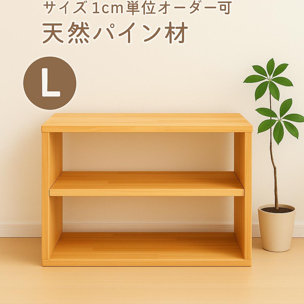 奥行・高さ・横幅すべて指定可能! オーダーメイドLサイズは最大、高さ60cm、横幅100cm、奥行き30cmまでのサイズを指定できます。 天然パイン材で作る2段オープンラックです。 1cm単位でのオーダー製作が可能なので、空間にぴったり収まる「シンデレラフィット」を実現できます。 無塗装仕上げのため、木の温もりや質感をそのまま楽しめます。 本棚・収納棚・ディスプレイ棚など幅広く活用できます。 特徴 素材:天然パイン集成材(無塗装) サイズ:奥行・高さ・横幅を1cm単位でオーダー可能 組立不要の完成品でお届け 耐荷重:約10〜20kg(棚板1枚あたり) おすすめの使い方 リビングの本棚や雑貨ディスプレイに キッチンでの調味料や家電収納に デスク下や収納棚の追加段として 店舗什器やイベント展示用にも ※天然木を使用しているため、木目や色合いには個体差があります。 ※オーダー製作のため、発送までにお時間をいただく場合があります。奥行・高さ・横幅を自由にオーダーできる、天然パイン材の2段オープンラック 「この隙間にちょうど入る棚がほしい」「既製品ではサイズが合わない」 そんなお悩みを解決する、1cm単位でサイズ指定可能なオーダーメイドラックです。 天然パイン材のやさしい木目と温もりが、暮らしの空間に自然に溶け込みます。 シンデレラフィットの心地よさ 奥行・高さ・横幅すべての寸法をご指定いただけるので、設置場所にぴったりフィット。 無塗装仕上げのため、木の質感をそのまま楽しむことも、ご自身で塗装して好みの色に仕上げることも可能です。 商品の特長 素材:天然パイン集成材(無塗装) 奥行・高さ・横幅を1cm単位でオーダー可能 完成品でお届け、組立不要 棚板耐荷重:約10〜20kg(棚板1枚あたり) ナチュラルな木目と手触り こんな方におすすめ 既製品のサイズが合わず、オーダーで作りたい方 リビングやキッチンで使える天然木の収納を探している方 店舗什器やイベント用ディスプレイ棚を探している方 DIYや塗装でアレンジを楽しみたい方 ご注文について ※天然木のため、木目や色合いには個体差があります。 ※オーダー製作のため、発送までにお時間をいただく場合があります。