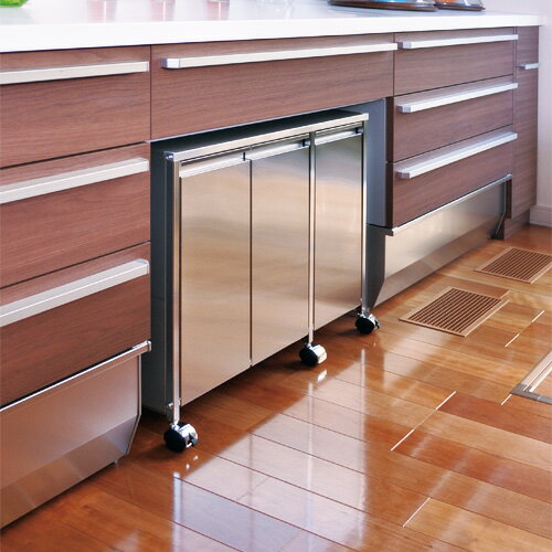 [オススメ]2つの脚部が選べる シンク下 ステンレス製ダストボックス 14L×3分別 総容量42リットル|日本製 足立製作所 ゴミ箱 シンデレラフィット ステンレス製 スマートキッチン システムキッチン キャスター