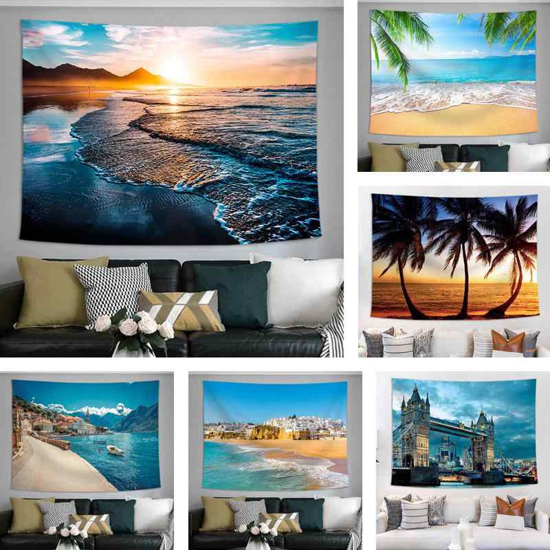 タペストリー 欧米風 風景 海辺 ビーチ 砂浜 背景布 ウォールデコレーション 壁掛け インテリア 部屋飾り 映え ポリエステル 長方形