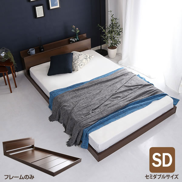 ローベッド フレームのみ セミダブル 低いベッド セミダブルベッド セミダブルサイズ sdベッド ローベット フロアベッド フロアーベッド ベッド ベット 棚付きベッド 宮棚付き 高級感 コンセント付き 抗菌 防臭 一人暮らしワンルーム 新生活 新築 新婚 ウォールナット
