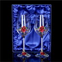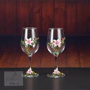 A004713薔薇花柄 高級ワイングラス ペア★レア 2点シャンパン グラス キラキラ
