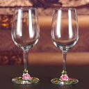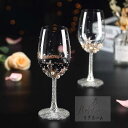 A031825高級感ワイングラス ペア グラス プレゼント ラインストーン クリア 花柄