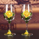 バラ百合風エレガントワイングラス ペアセット 金彩装飾 花柄 ガラス製