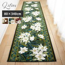 廊下敷き 廊下用マット ユリ/80×240cm ロングマット 廊下マット おしゃれ 滑りにくい 日本製 国産 抗菌 防臭 吸水 速乾 和泉 北欧 花柄 リーフ アクリル 東レ ブラウン グリーン エンジ 三愛【メーカー直送】 誕生日 プレゼント 実用的