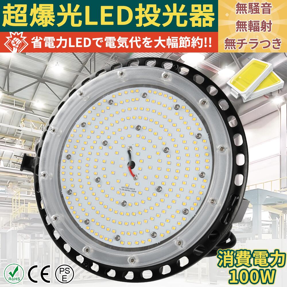 100セット LED高天井照明 LED高天井灯 UFO型 100W 20000lm 1000W相当 50000H長寿命 LED投光器 円盤型 LEDハイベイライト ペンダント ダウンライト 吊り上げ専用型 AC100V/AC200V ステー付き LED水銀灯 LED作業灯 IP65防水性能抜群 外置Meanwell電源 PSE認証 二年保証