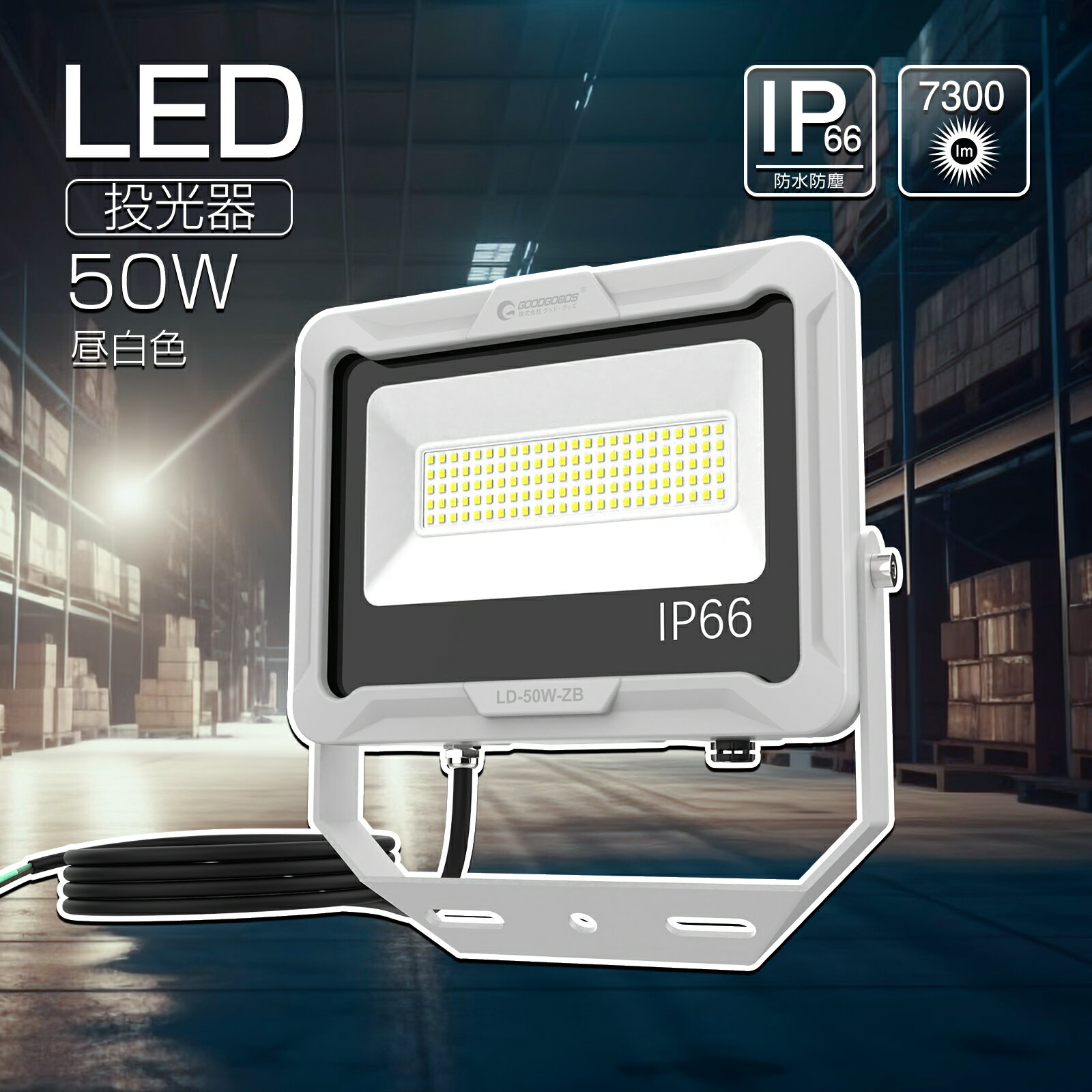 【ブラックフライデーP2倍&限定クーポン】GOODGOODS LED投光器 LED 小型 50W 7300LM 通気弁 昼白色 取付簡単 耐風 耐震 倉庫 駐車場 工場 照明 店舗 屋外 屋外 施設照明 体育館 運動場 グラウンド 作業灯 看板灯 高輝度LEDチップ ライトアップ LD50W-ZB