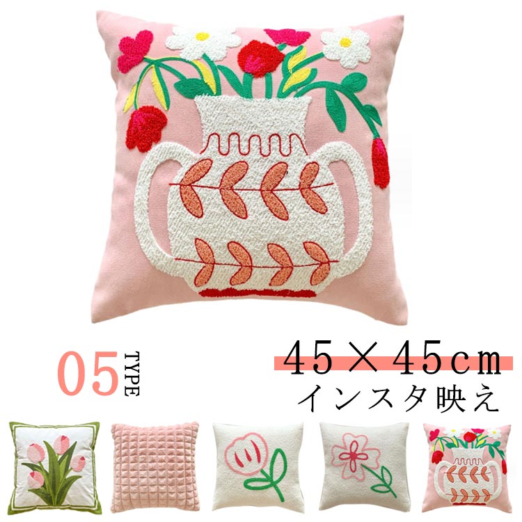 花柄 クッション クッションカバー カバー ベージュ フラワー もこもこ 大きい 大きめ 45cm×45cm 北欧 韓国 おしゃれ 可愛い デザイン 洗える ふわふわ 四角 正方形 韓国 雑貨 インテリア 北欧 ふわふわ 総柄 インスタグラム グッズ インスタ映え