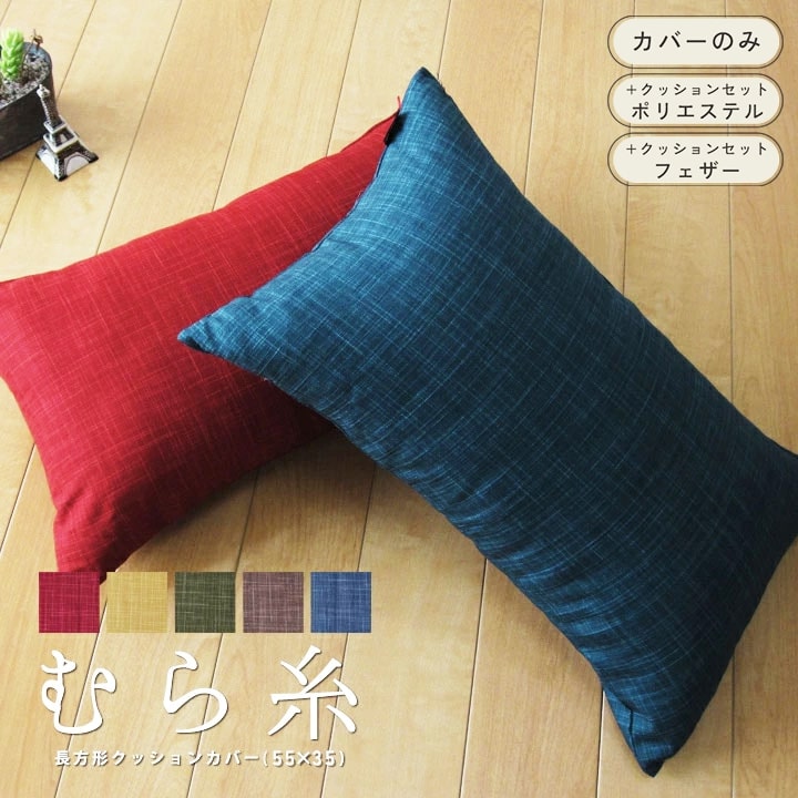 fabrizm <受注生産> クッションカバー 長方形L 55×35cm むら糸 5色展開 日本製 背当てカバー 枕カバー おしゃれ 和風 敬老の日 かわいい 無地 名入れ刺繍OK