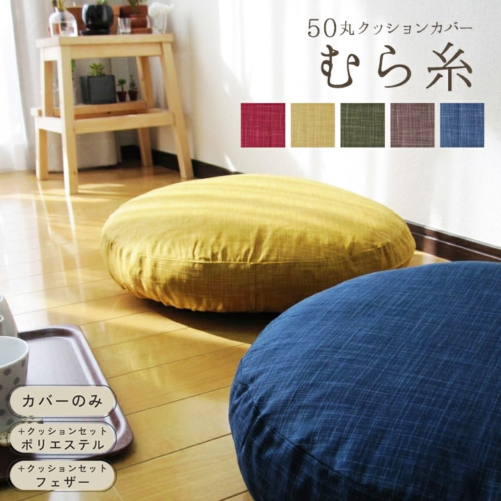 fabrizm <受注生産> クッションカバー 50丸 直径50cm用 むら糸 5色展開 日本製 背当てカバー 座布団カバー 丸型 円形 おしゃれ 和風 敬老の日 かわいい 無地 名入れ刺繍OK