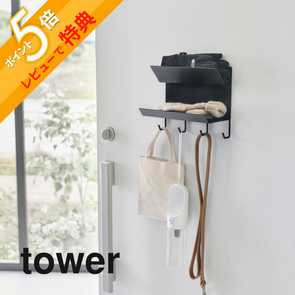 手袋ホルダー マグネット tower 玄関収納タワー tower 山崎実業 白 黒 シンプル フック付きマグネット手袋ホルダー タワー
