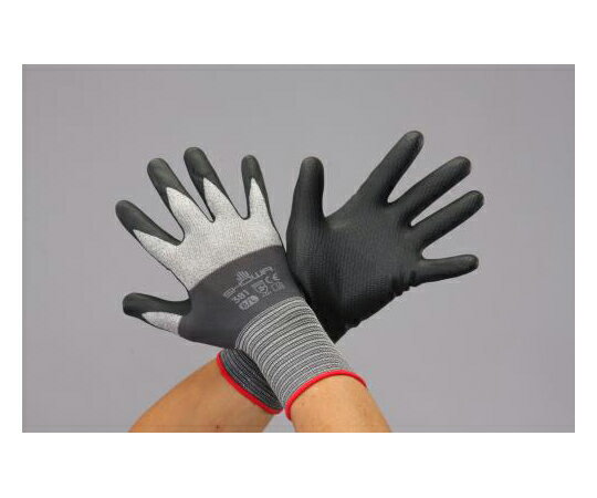 エスコ 手袋(ナイロン・ポリエステル・ニトリルゴムコート) [LL] EA354GD-63 1双●マイクロファイバーの編目を密にすることで、肌への密着性を高め、手袋内面の滑り止め効果を高めています。●指先をダブルコートで強化しています。●耐油性に優れています。●サイズ:LL●全長:260mm●厚み:0.88mm●掌周り:200mm●中指長さ:84mm●材質:樹脂部:ニトリルゴム、繊維部:ナイロン・ポリエステル・その他●カラー:本体:グレー 手首:ホワイト 裾:レッド