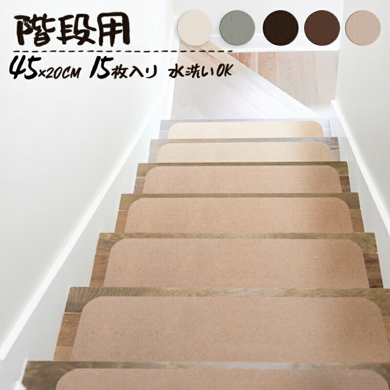 滑り止めマット 階段マット 15枚入り 滑り止め付き階段マット 45×20cm 70×19cm 洗える 吸着 防音 冷え対策 転倒防止 キズ防止 ケガ防止に 階段 ペット 室内用 ウォッシャブル 階段用 すべり止め シート ベビー カーペット【送料無料】