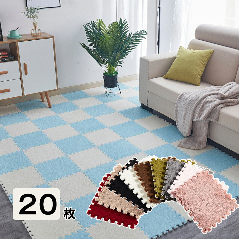 送料無料 [20枚入] 起毛ジョイントマット 30*30cm 厚さ10mm カーペット サイドパーツ付 防音 抗菌防臭 防ダニ 滑り止め 洗える フロアマット プレイマット キッズマット ベビーマット おしゃれ かわいい 赤ちゃん 洗える ジョイントラグ 子供部屋 楽天海外通販