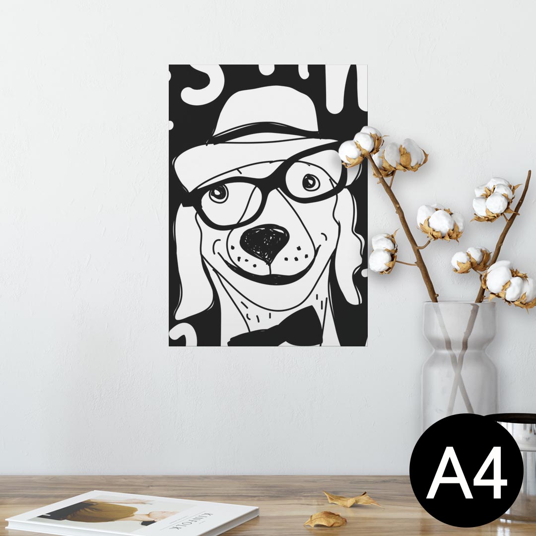 ポスター ウォールステッカー シール式ステッカー 飾り 210×297mm A4 写真 フォト 壁 インテリア おしゃれ 剥がせる wall sticker poster 010945 犬 英語 めがね