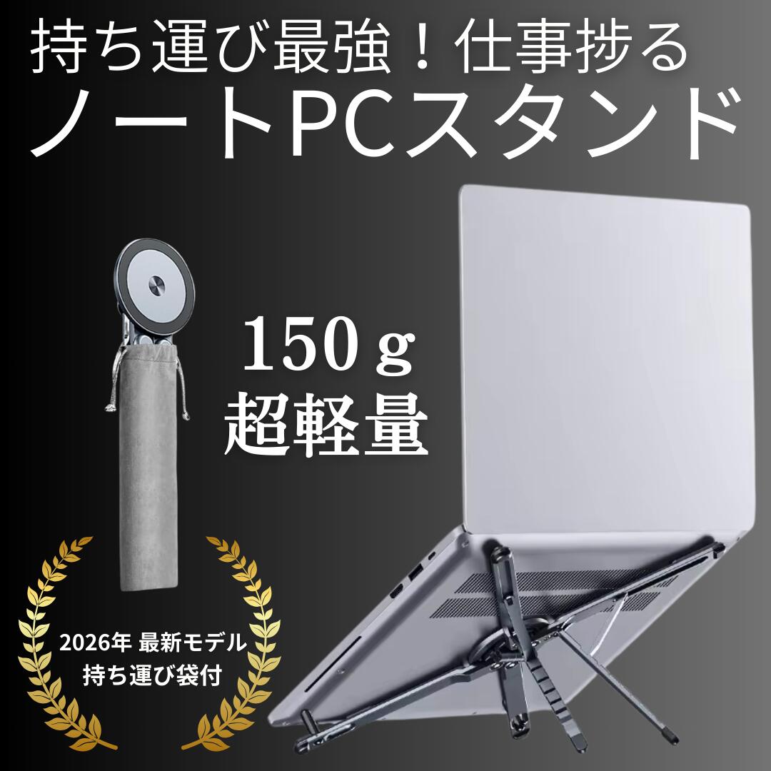 【送料無料】超軽量 ノートパソコンスタンド pcスタンド タブレットスタンド 折りたたみ式 人間工学 8段階高さ&角度調整可能 滑り止めデザイン 軽量 省スペース アルミ製 持ち運び便利 貼り付け磁気リング付き PC/Mac/iPad