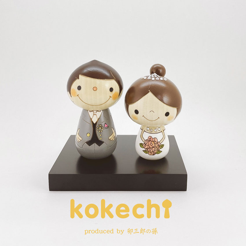 商品について ■商品説明文 天然の水木を使用した、kokechiオリジナルのこけしはスマイルがテーマの優しい表情に無垢なまなざし。見ているだけで癒されます。 「ウェルカムドール」とは、結婚披露宴などで新郎新婦に代わってゲストをお迎えするという意味を込めて、パーティ会場の受付などに置かれる人形のこと。 受付テーブルにちょこんと置いておくと、招待客の目に触れて目印にもなり、これから始まる結婚披露宴のハッピーな雰囲気を伝えることのできるアイテムの1つです。 受付だけでなく、新郎新婦のお色直しのときにテーブルに置いておいたり、披露宴後は新居に記念として飾ったりしてもOK。 大切なお友達へのプレゼントにもおすすめです。 ぜひ、お気に入りのウェルカムドールを見つけて、一生に一度の素敵なパーティーを可愛らしく演出しましょう! ■サイズ ・こけしサイズ新郎:高さ約9cm幅約5cm ・こけしサイズ新婦:高さ約8cm幅約5cm ■素材/材質 水木(国産) 注意事項 ※手づくりのお品物ですので、絵柄、表情、色味、大きさ等が画像と異なる場合がございます。 ※またこけしは自然の天然木を使用しているため、お品ごとに木目や木肌に若干の違いがございます。 ※画面上と実物では色具合が多少異なって見える場合もございます。 以上の点についてご理解、ご了承いただきますようお願いいたします。 ※こちらの商品は実店舗でも販売しております関係上、ご購入のタイミングによっては品切れが発生する場合もございます。 大変恐れ入りますが、その場合はキャンセル対応をさせていただきますこと、予めご了承ください。 【GIFT】【GIFTwedding】【INTE】【INTEjapanese】【こけし 雑貨・こけし 卯三郎 こけし コケシ 手作り 木製 人形玩具 お祝い ギフト プレゼント 記念 インテリア 置物 和風 和雑貨 こけし 伝統・マトリョーシカ・マトリョーシカ 雑貨・マトリョーシカ グッズ・ウェディング・結婚】 卯三郎こけしの創業者、卯三郎の孫が創りだすちっちゃなkokechiの世界!! 【こけし・卯三郎こけし・こけし 雑貨・こけし グッズ・こけし 雛・雛人形・こけしマッチ制作所・こけしてづくり手帖・ミッフィー こけし 卯三郎・こけし 伝統・マトリョーシカ・マトリョーシカ 雑貨・マトリョーシカ グッズ】