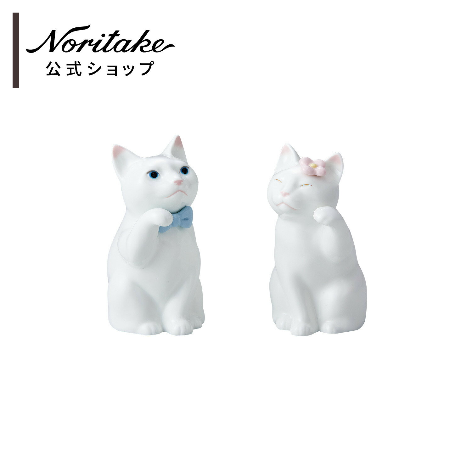 ノリタケ 置物 招き猫(小) ペア ウェルカムキャット ( 結婚祝い 縁起物 開店祝い 開業祝い 新築祝い ギフトボックス入り 長寿祝い 記念品・景品 銘板・立札作成 おしゃれ プレゼント お祝い
