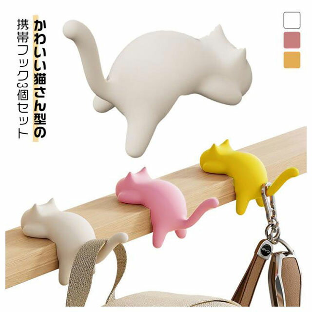 かわいい猫さん型の携帯フック3個セット。机に引っ掛けるだけで荷物をしっかり支える便利グッズです。。鞄をかけだけでなく、ヘッドセット、かばん、傘、服などのハンガーとして使用できます サイズ 3個セット サイズについての説明 3個セット 素材 ABS、ポリエステル 色 各色一個 イエロー ピンク ホワイト 備考 ●サイズ詳細等の測り方はスタッフ間で統一、徹底はしておりますが、実寸は商品によって若干の誤差(1cm〜3cm )がある場合がございますので、予めご了承ください。 ●商品の色は、撮影時の光や、お客様のモニターの色具合などにより、実際の商品と異なる場合がございます。あらかじめ、ご了承ください。 ●製品によっては、生地の特性上、洗濯時に縮む場合がございますので洗濯時はご注意下さいませ。 ▼色味の強い製品によっては他の衣類などに色移りする場合もございますので、速やかに(脱水、乾燥等)するようにお願いいたします。 ▼生地によっては摩擦や汗、雨などで濡れた時は、他の製品に移染する恐れがございますので、着用の際はご注意下さい。 ▼生地の特性上、やや匂いが強く感じられるものもございます。数日のご使用や陰干しなどで気になる匂いはほとんど感じられなくなります。