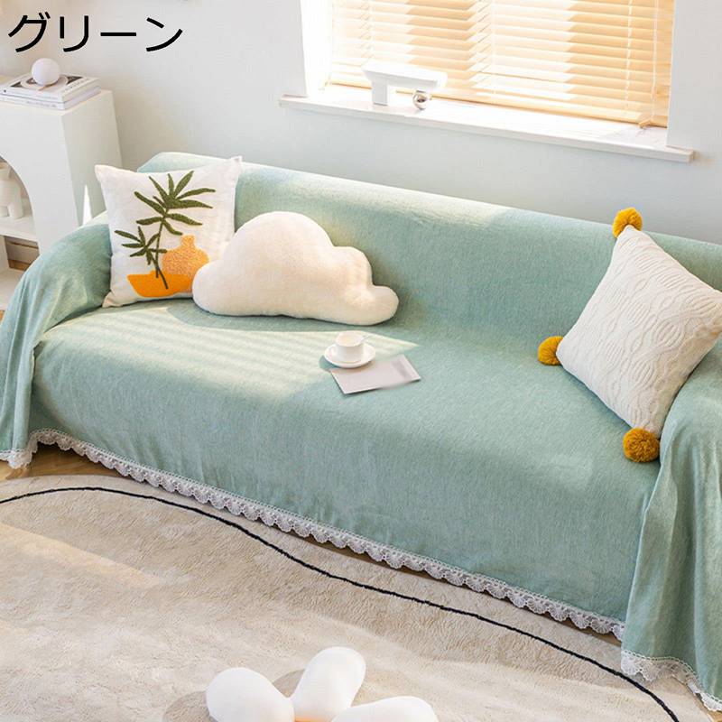 ソファーカバー マルチカバー 長方形 北欧風 防塵 ベッドカバー 大判 犬 猫 キズ防止 汚れ防止 1/2人掛け レース飾り マルチクロス ブランケット カウチ 毛布 無地 水洗い 四季通用