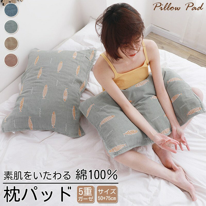 ガーゼ枕カバー 5重ガーゼ マクラカバー 綿100% 50*75cm 割れにくい 魚 さかな レトロ 涼感 吸水 吸湿 通気性 ガーゼ枕カバー新生活 コットン 寝具 掛布団 柔らかい 5重ガーゼケット インテリア 春夏 オールシーズン ギフト プレゼント 贈り物 お祝い 全4色 2025新作