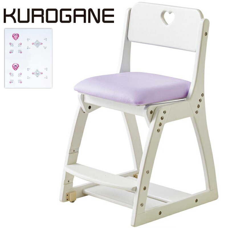 【文具プレゼント!】2025年 くろがね キュートガールシリーズ 木製チェア WCG-25WHVL デコシール付き 学習椅子 座面PVC張り 天然木 座面高さ調節4段階 座面前後奥行きスライド調節 足置き高さ3段階調節 沈み込みキャスター