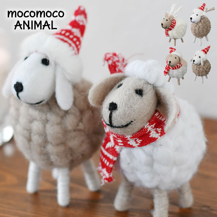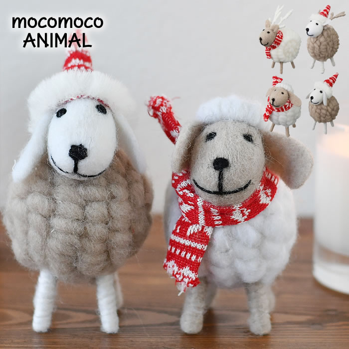 【12月10日はポイント最大10倍祭】モコモコアニマル ぼうし・マフラー 北欧 ヒツジ トナカイ フェルト おしゃれ インテリア クリスマス プレゼント 雑貨 かわいい 玄関 置物 ギフト 安眠 冬