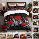 布団カバー クリスマス 3Dデジタルプリント 3点セット ポリエステル製 ベッドシーツ式 花柄模様 ダブル クイーンサイズ対応 寝具カバーセット