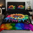 布団カバーセット カラフル グラフィティ アート ひまわり 蝶 3Dデジタルプリント 北欧風 ポリエステル素材 寝具 ベッドリネン おしゃれ 3点セット