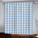 遮光カーテン ブルー&チェック 3D プリント ウィンドウカーテン ウィンドウドレープ 大人 レディース ボーイズ リビングルーム ベッドルーム キッチン 遮光カーテン サイズ:170cm(幅)x20