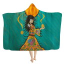 着る毛布 レディース 女性用 フード付き 厚手 二重 もこもこ フリース 3Dデジタルプリント 和服美人柄 ポンチョ ケープ ルームウェア 防寒 秋冬 部屋着 あったか