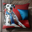 ネクタイ ダルメシアン 赤いソファ 青いクッション クッションカバー 45×45cm アニマル柄 おしゃれ 可愛い クッション本体付き 正方形 犬ファン