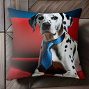 赤いソファー ダルメシアン 青いネクタイ 青い背景 クッションカバー 45×45cm アニマル柄 おしゃれ 可愛い クッション本体付き 正方形 犬ファン