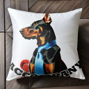 ネクタイ ドーベルマン 会社 ビジネス 可愛い かっこいい クッションカバー 45×45cm アニマル柄 おしゃれ クッション本体付き 正方形 犬ファン