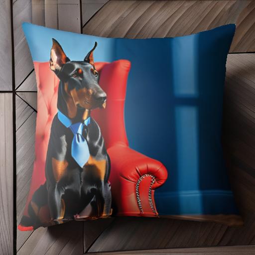 赤い椅子 ドーベルマン 青いネクタイ クッションカバー 45×45cm アニマル柄 おしゃれ 可愛い クッション本体付き 正方形 犬ファン