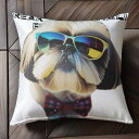 サングラス シーズー 蝶ネクタイ クッションカバー 45×45cm アニマル柄 おしゃれ 可愛い クッション本体付き 正方形 犬ファン