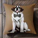 蝶ネクタイ セントバーナード タキシード クッションカバー 45×45cm アニマル柄 おしゃれ 可愛い クッション本体付き 正方形 犬ファン