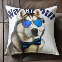 サングラス シベリアンハスキー 蝶ネクタイ クッションカバー 45×45cm アニマル柄 おしゃれ 可愛い クッション本体付き 正方形 犬ファン