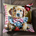 イチゴ ゴールデンレトリバー 蝶ネクタイ 花 クッションカバー 45×45cm アニマル柄 おしゃれ 可愛い クッション本体付き 正方形 犬ファン