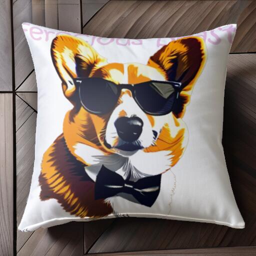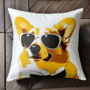 サングラス コーギー 蝶ネクタイ クッションカバー 45×45cm アニマル柄 おしゃれ 可愛い クッション本体付き 正方形