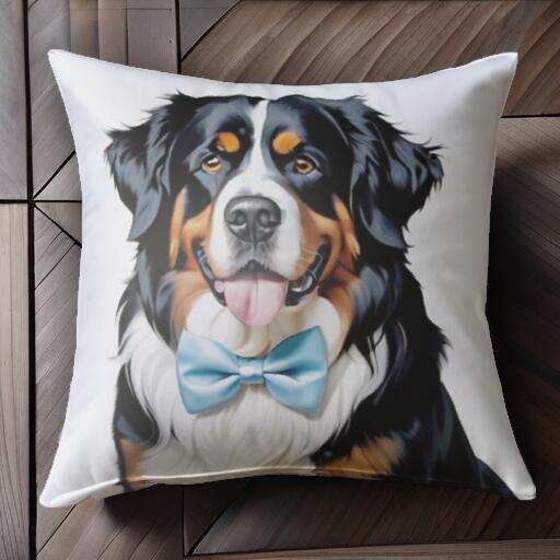 蝶ネクタイ バーニーズマウンテンドッグ クッションカバー 45×45cm アニマル柄 おしゃれ 可愛い クッション本体付き 正方形