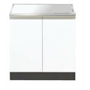 ■サイズ:幅700×奥行545×高さ670■天板/ステンレス sus430 ■扉/ホワイト:低圧メラミン化粧坂 スライド丁番 他3色:コート紙パーチクルボード使用■底板/アルミ合板■加熱機器置き型仕様●表示価格には加熱機器・水栓は含まれておりません。加熱機器(ihヒーター、ガスコンロ等)・水栓につきましては、別途お問い合わせ下さい。●ステンレス製品の施工時および使用時のご注意ステンレスは錆びにくい金属ですが、施工時・ご使用の時の環境や条件により、汚れや錆びが生じることがあります。下記の点にご注意ください。●施工時取り付け時に水道管などのねじ切りで生じた鉄粉や錆びは、もらい錆びの原因になりますので、きれいな水で流してください。設置後汚れを落とすために、酸性またはアルカリ性の強い洗剤を使った時は、錆びを防止するため、水洗いを充分行って、水分は拭き取ってください。引き渡しまでは、キズを防止するため、シンク天板を養生し、踏み台代わりに乗ったりすることがないようにお願いします。●ご使用時鉄製のタワシや鉄粉を主とした異種金属の容器や器具などをステンレスの表面に置きますと、それ自身が錆びたりステンレスのもらい錆びの原因になることがありますので、ご注意ください。赤錆になってしまった時は、ステンレス用クレンザーを付けてよくこすり、きれいに水洗いしてください。強い洗剤や塩素系の洗浄剤、ぬめり防止剤、漂白、殺菌剤は錆びの原因になることがありますので、こうした製品をご使用した後は、入念に水洗いしてください。塩素の強い醤油などの食器や油の汚れが付着した時は、スポンジに中性洗剤を付けて早めに洗い流してください。