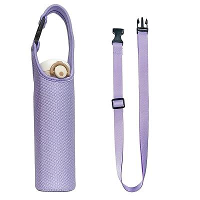 水筒カバー ショルダー 750ml 1L 保冷保温 ストラップ付き マイボトル 肩掛け 手提げ 水筒ポーチ 学校/通勤/旅行 持ち運び (パープル 1000ml)