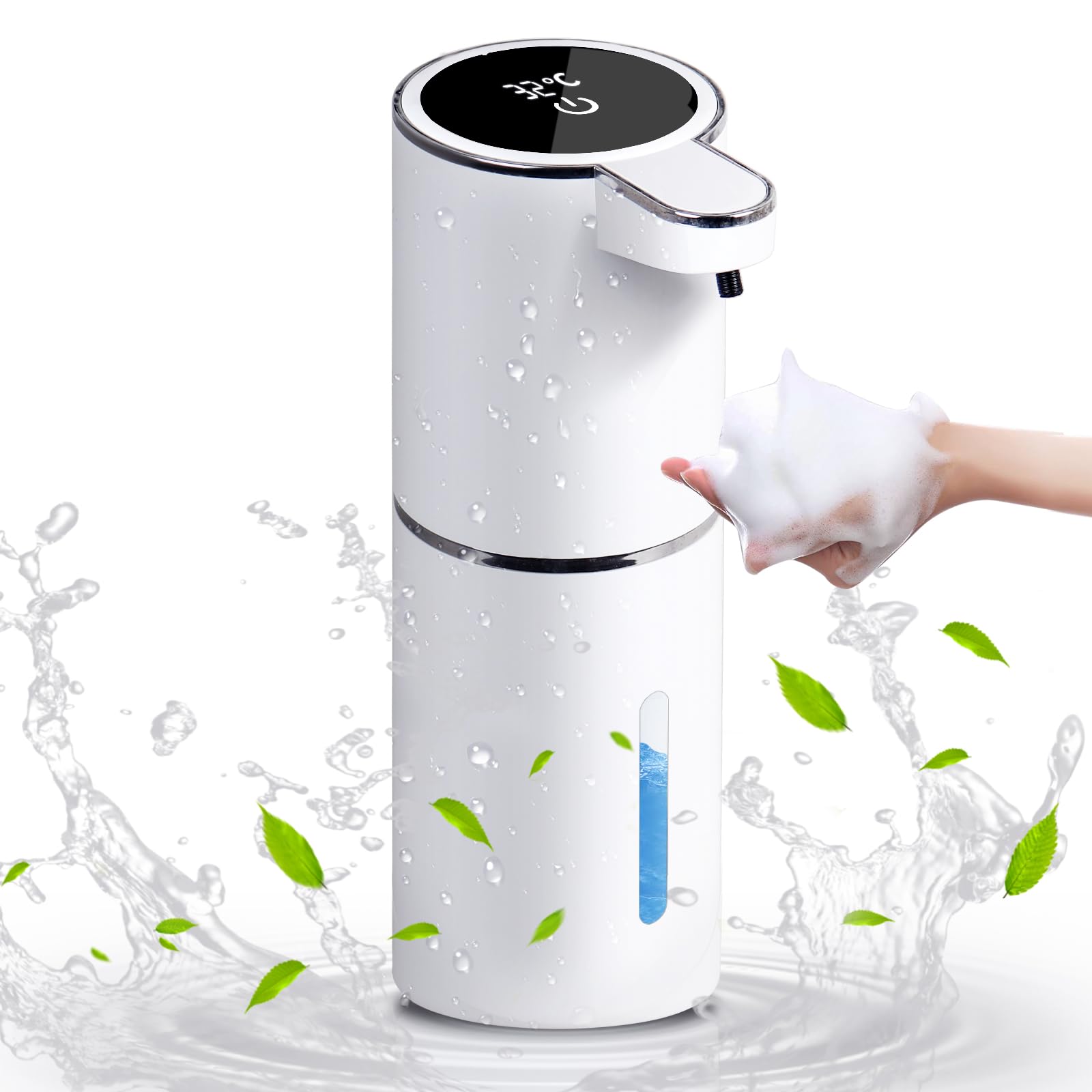 【非接触式高感度センサー・0.1秒反応】ソープディスペンサーは最先進の高感度赤外線センサーが搭載するため、0.1秒で石鹸を手にすばやく効率的に分散させることができます。手をかざすと赤外線センサーが感知してソープが自動的に出てきます。操作簡単、使用便利。優れた非接触式の手洗い体験を提供します。手動式に比べると自動的出るソープディスペンサー自動 泡は、安全衛生、二次感染を防止します。ご家族の健康を守っていただけます。【四段階調節・電量と温度表示】オートソープディスペンサーは、4段階の吐出量モードを搭載しています。電源ボタンをタッチするだけで、0.3秒/0.8秒/1.5秒/2.0秒の吐出量モードを簡単に調節できます。自分の好みや手の汚れ具合に合わせて、ハンドソープの泡の出力量を調整することができます。温度と余剰電力をリアルタイムで表示する電子スクリーンを同時に搭載し、ハンドソープディスペンサーの電気量の状況をよりよく知ることができます。【380ml大容量&USB充電式】 容量が380mlでたっぷりです。高品質なABS材を採用され、長くご利用頂けます。超大バッテリ容量 1200M容量L、一度の充電で最大3ヶ月間使い続けられるため、頻繁な充電も必要なくお好きな場所へ持ち運んで使えます。電池交換不要で配線も不要の省エネ充電タイプで、USBポートからの充電が可能です。【壁掛け可能・IPX5防水】専用の壁掛けフックも付属しており、壁に穴を開けることなく簡単に設置でき、省スペースでお部屋がすっきりと整います。取り付けが簡単です。IPX5の防水仕様になっており、キッチンや洗面所などの水回りでも使用できます。透明窓口があるので、液体石鹸の残量がひと目でわかります。【安心保障・さまざまな場面で大活躍】本製品は1年保証付きです。検品、品質には万全を期しておりますが、万が一初期不良が発生した場合は、当店が責任をもって交換、返品対応をさせて頂きます。製品に関する問題がある場合は、遠慮無くメールでお問い合わせください、いつでも満足のいくサービスを提供します。泡ハンドソープ ディスペンサーは優秀な便利性とコンパクトなサイズで、お宅や学校、幼稚園、病院、医療機関、ホテル、映画館、オフィス、会社、事務所など公共の場での衛生管理または感染予防に最適です。